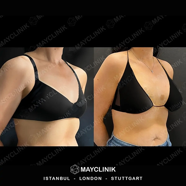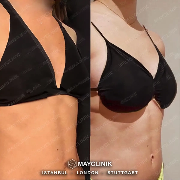 In the lifting stage, excess skin is removed and the nipple is repositioned. This step gives the breasts a firmer and more youthful appearance. In the second stage, an implant specifically selected for the individual is placed either under the breast tissue or beneath the muscle. The placement technique varies depending on the patient’s body structure and the desired result. Incisions are made in inconspicuous or minimally visible areas and closed using aesthetic suturing techniques. Absorbable stitches may also be used for a more comfortable healing process. After the surgery is completed, the breasts are supported with special bandages and the recovery process begins.